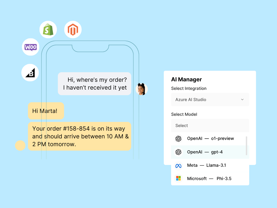 We set up your sales use case, connect your store, WhatsApp, and other channels, and train your team to start selling with AI support in days.